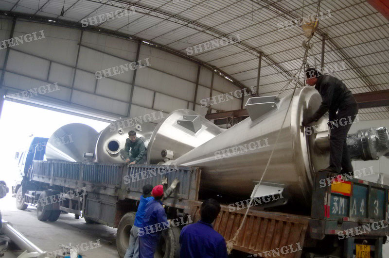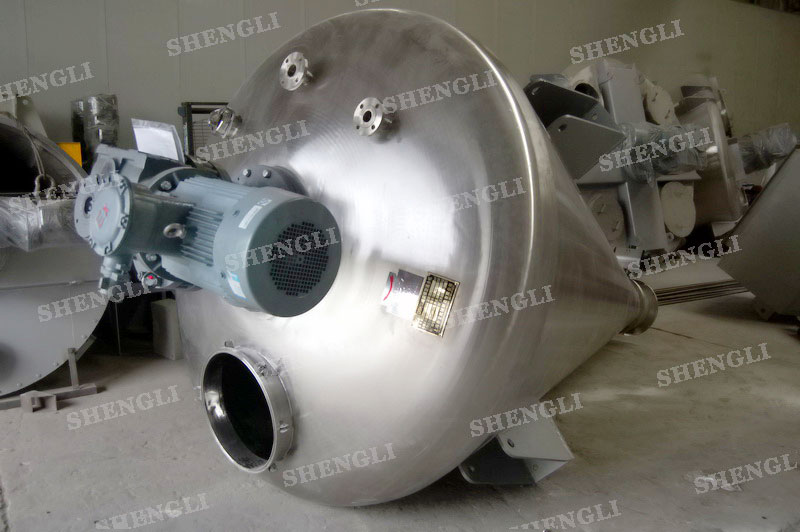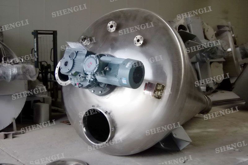 描述:錐形雙螺旋混合機內部安裝非對稱傾斜螺旋,雙螺旋自身旋轉,提升物料,并有公轉減速箱驅動,沿錐體中心軸公轉,360度攪拌物料,擁有非破壞性攪拌以及快速且無殘留卸料的特點。該設備采用上蓋一體式,選用耐壓橢圓封頭結構、配置氣動球面閥,錐形中心軸噴液,內表面做鏡面處理、外表面亞光處理,架設人孔、觀察口、排氣口等設置。