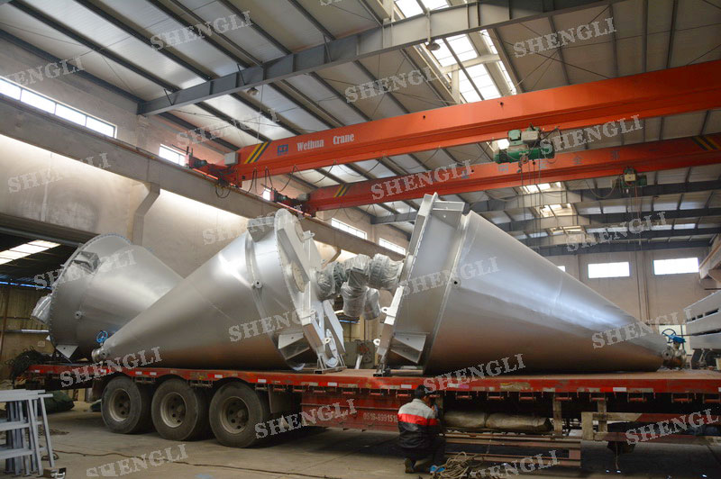 描述:雙螺旋攪拌機(jī)內(nèi)部安裝非對稱傾斜螺旋,雙螺旋自身旋轉(zhuǎn),提升物料,并有公轉(zhuǎn)減速箱驅(qū)動,沿錐體中心軸公轉(zhuǎn),360度攪拌物料,擁有非破壞性攪拌以及快速且無殘留卸料的特點(diǎn)。該設(shè)備配置自轉(zhuǎn)、公轉(zhuǎn)一體式驅(qū)動,內(nèi)設(shè)中心軸線噴液噴頭,筒體出料口配置球面閥。