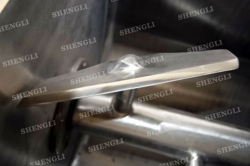工作原理:槳葉式混合設備采用U型筒體,內設平行主軸,主軸上安裝若干傾角式槳葉刀,不僅能快速高效的攪拌物料,且不會破壞物料,不會卡料。