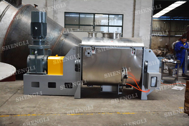 工作原理:槳葉混合機采用U型筒體,內設平行主軸,主軸上安裝若干傾角式槳葉刀,不僅能快速高效的攪拌物料,且不會破壞物料,不會卡料。