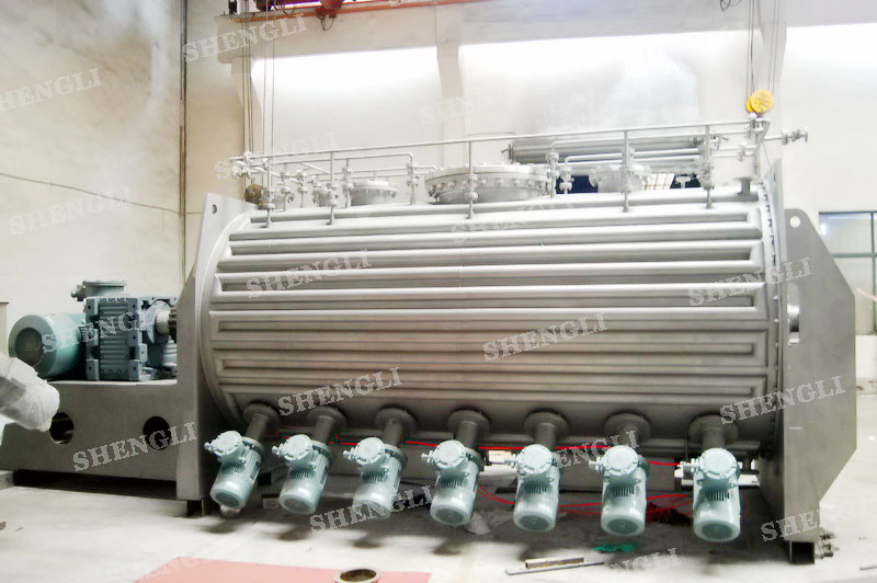 設(shè)備配置:配置K系列減速機(jī),皮帶式安裝;搭載十四臺3000轉(zhuǎn)每分鐘的高速飛刀;筒體外設(shè)導(dǎo)熱介質(zhì)盤管夾套;出料口采用雙氣動翻板閥;主軸與飛刀主軸采用氣密封;設(shè)備架設(shè)多組噴液系統(tǒng);筒體上設(shè)氣動在線取樣閥;設(shè)備內(nèi)表面鏡面拋光、外表面噴砂亞光。