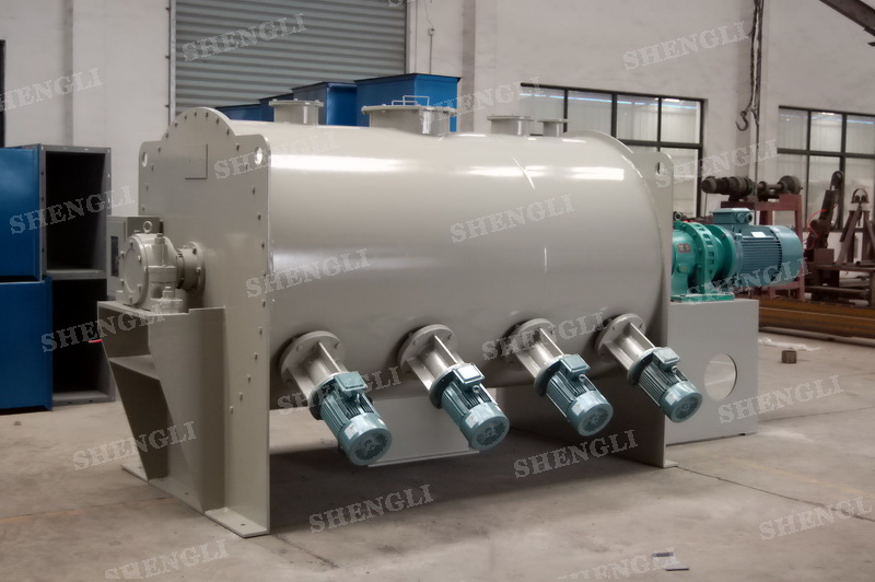 描述:犁刀混合機采用臥式圓柱筒體,內設平行主軸,主軸上安裝若干犁式刀頭,通過較快的旋轉速度,分割、重合物料,實現快速攪拌的功能,常結合1500-3000轉高速剪切飛刀相互作用。