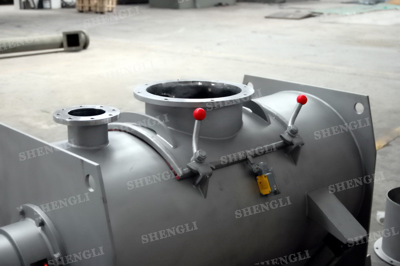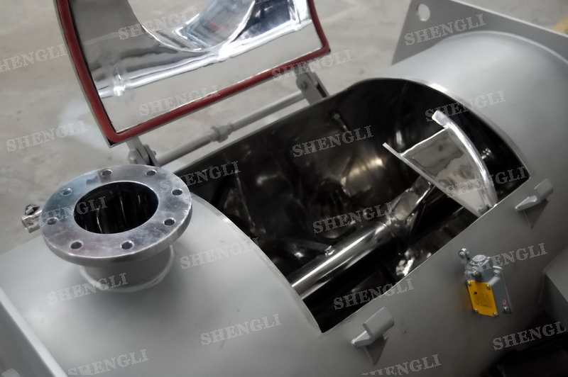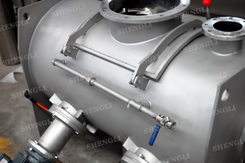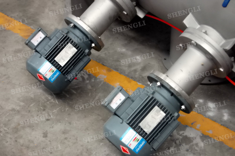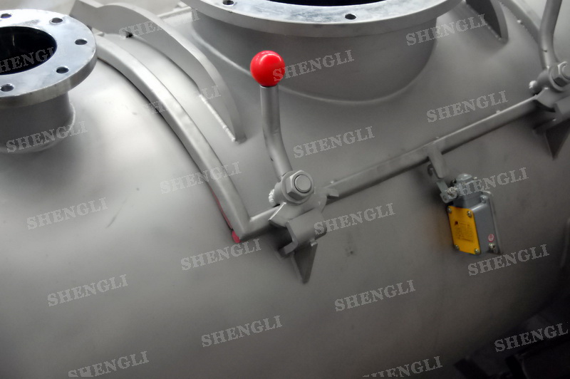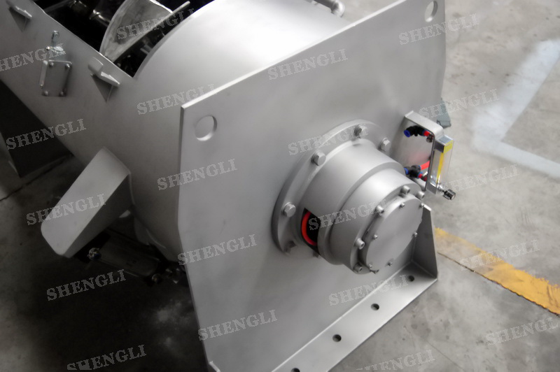 設備配置:配置SEW電機R系列減速機;搭載兩臺3000轉每分鐘的高速飛刀;開設快開式檢修門及法蘭投料口;采用氣動翻板閥;主軸與飛刀主軸采用氣密封;飛刀處設加液噴頭;設備內表面鏡面拋光、外表面噴砂亞光。