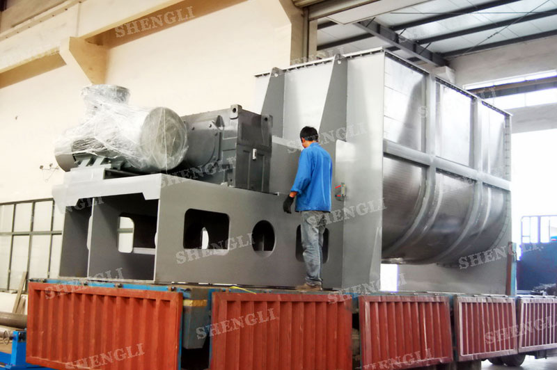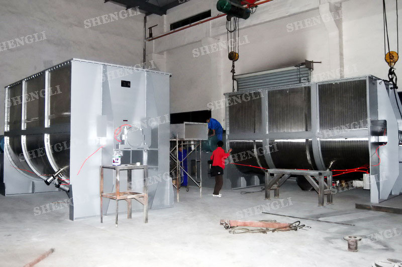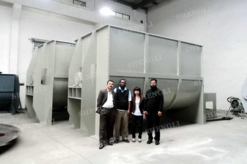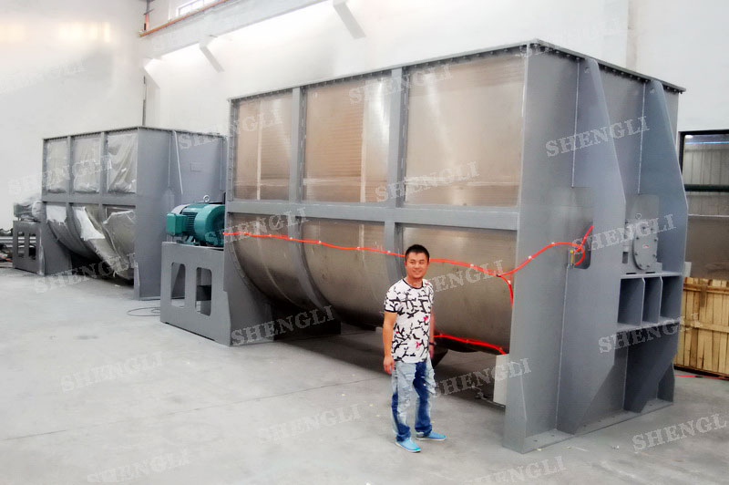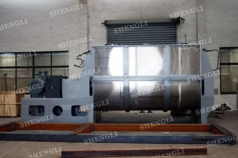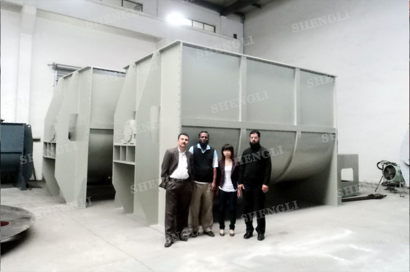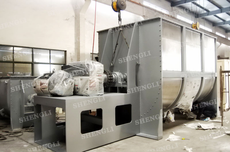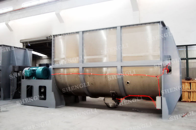 工作原理:螺帶大型混合機(jī)采用U型筒體,內(nèi)裝平行主軸,主軸上安裝正反雙向的盤條螺帶,不同維度螺帶分內(nèi)螺帶與外螺帶,物料在螺帶的驅(qū)使下反復(fù)參混,能夠快速高效的混合。