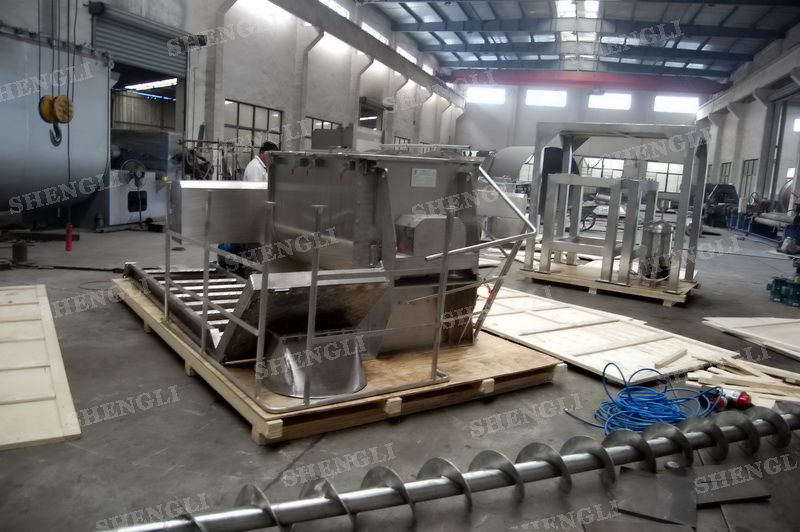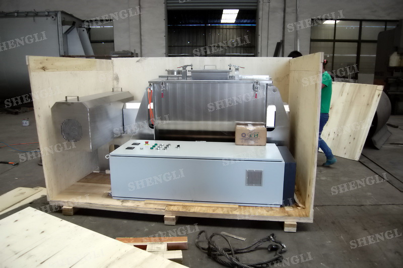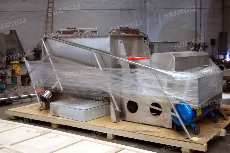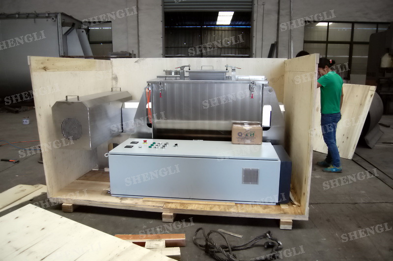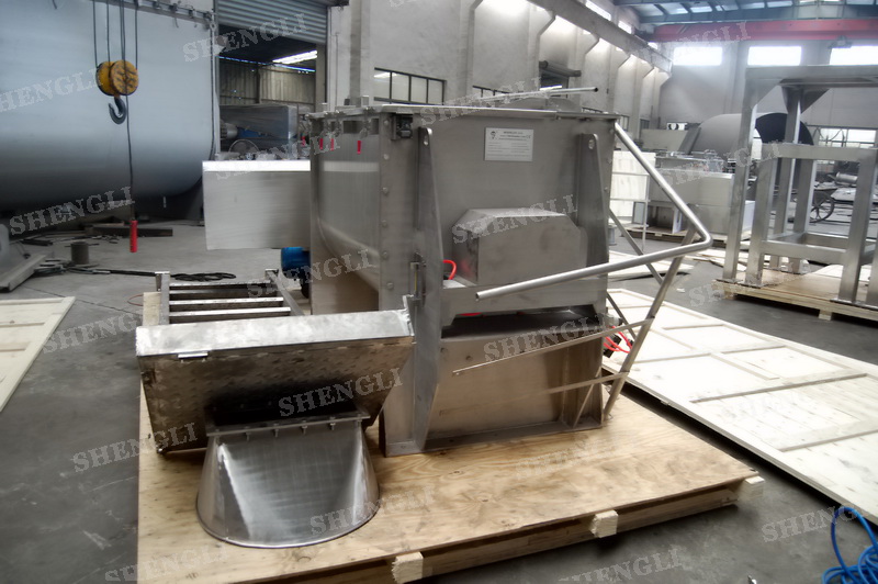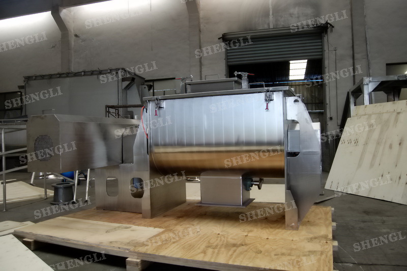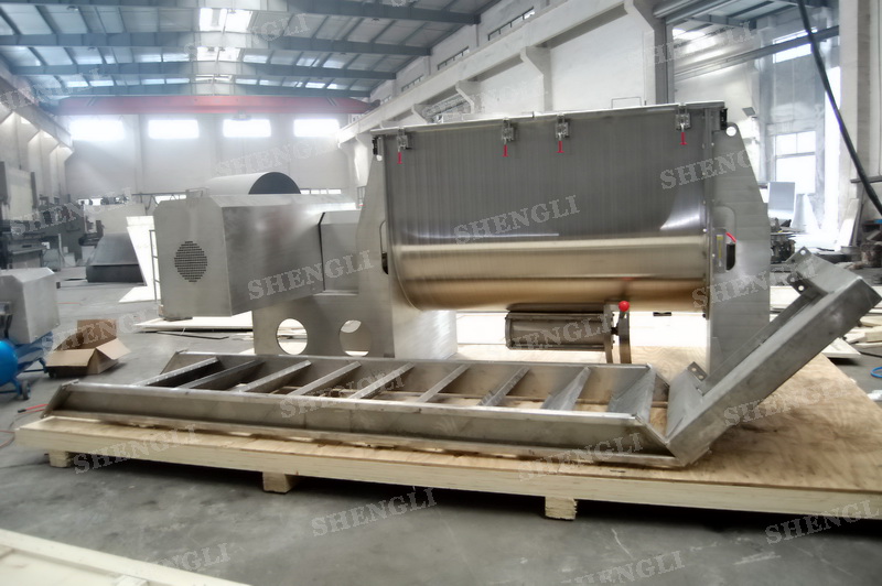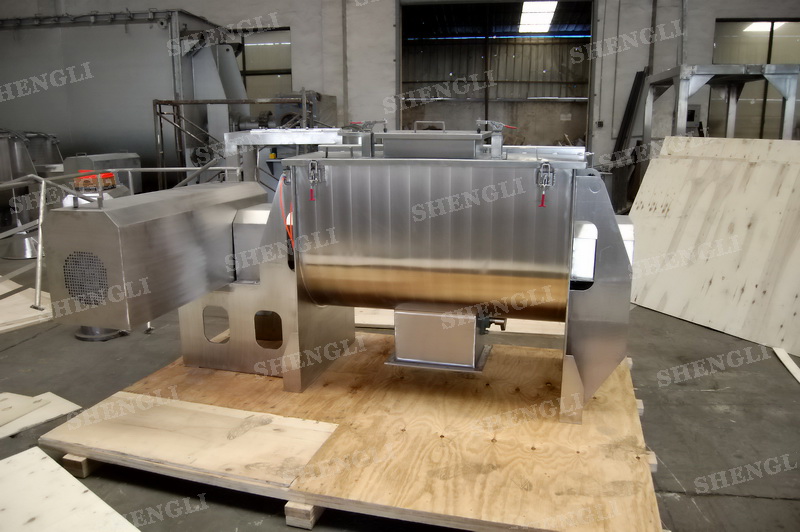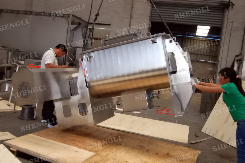 工作原理:螺帶式混合機采用U型筒體,內裝平行主軸,主軸上安裝正反雙向的盤條螺帶,不同維度螺帶分內螺帶與外螺帶,物料在螺帶的驅使下反復參混,能夠快速高效的混合。
