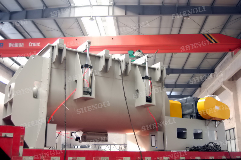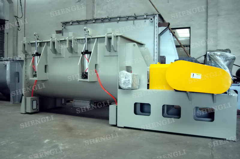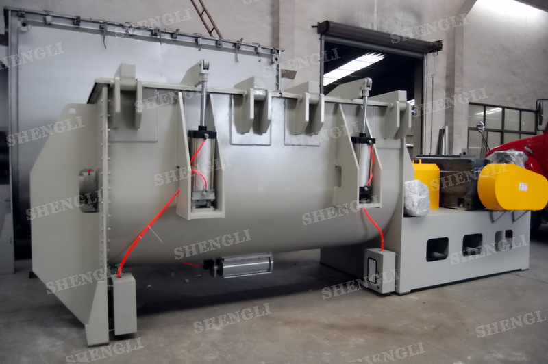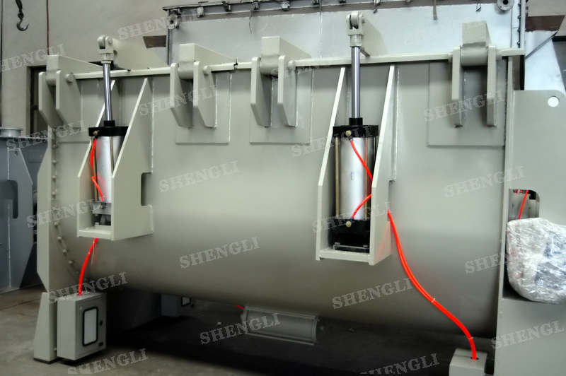 工作原理:螺帶臥式攪拌機采用U型筒體,內裝平行主軸,主軸上安裝正反雙向的盤條螺帶,不同維度螺帶分內螺帶與外螺帶,物料在螺帶的驅使下反復參混,能夠快速高效的混合。