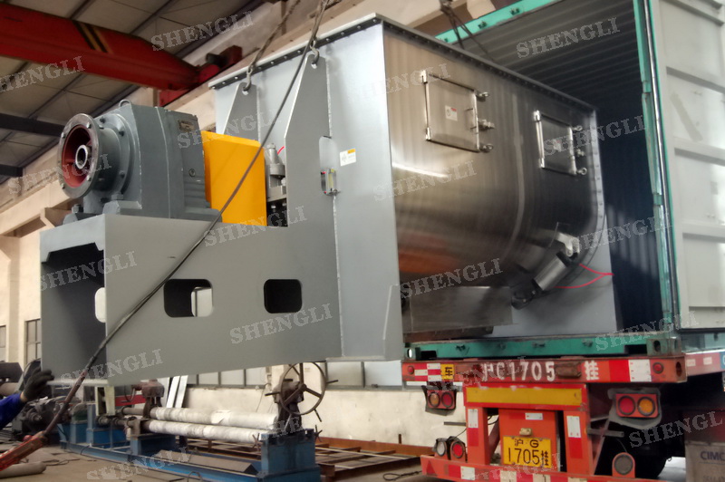 設備配置:配置R系列減速機、直線安裝;桶蓋法蘭式,開設標準入料口;出料閥采用氣動翻板閥;設備主軸采用氣密封;設備內、外表面拉絲拋光。