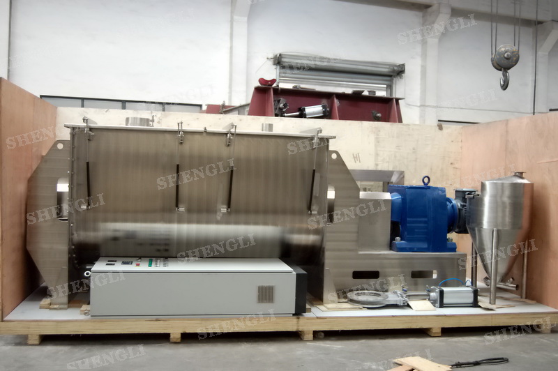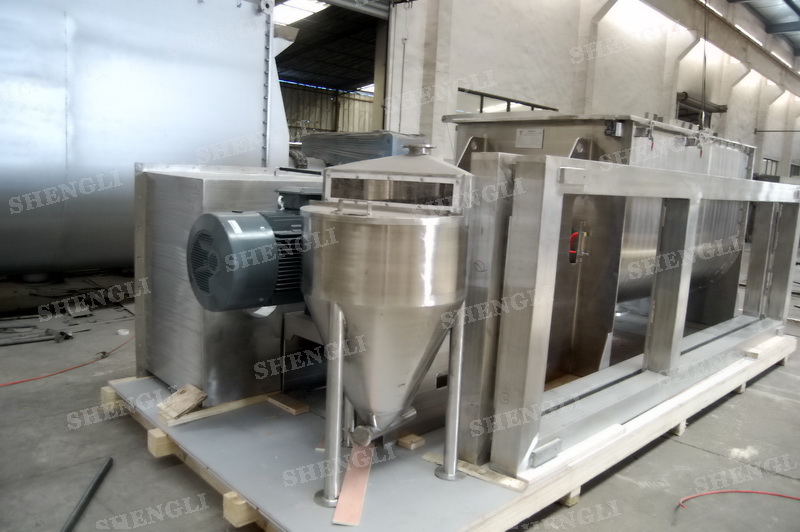 工作原理:螺帶混合機采用U型筒體,內(nèi)裝平行主軸,主軸上安裝正反雙向的盤條螺帶,不同維度螺帶分內(nèi)螺帶與外螺帶,物料在螺帶的驅(qū)使下反復(fù)參混,能夠快速高效的混合。