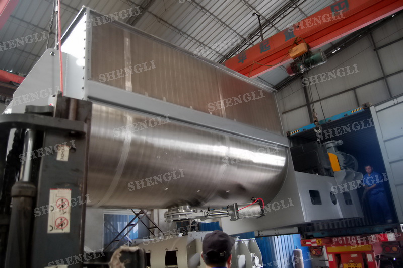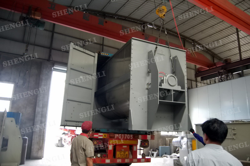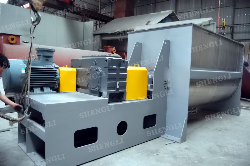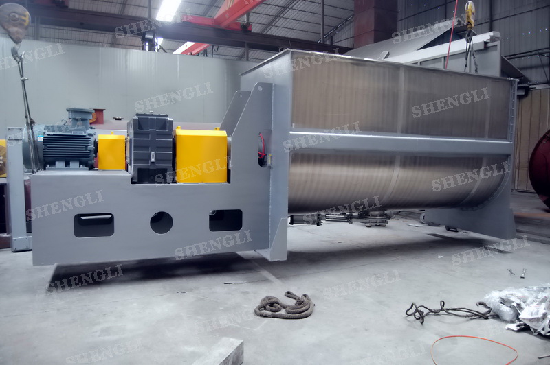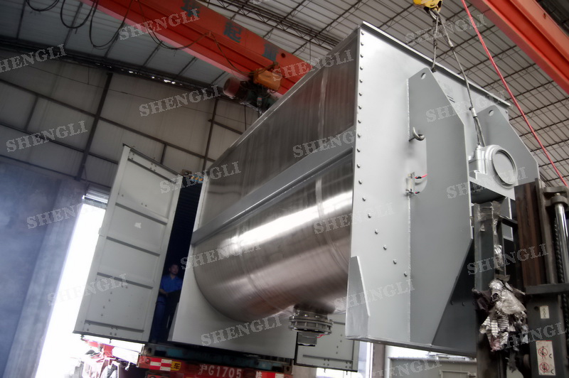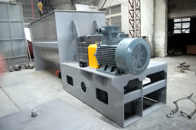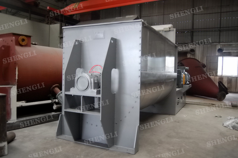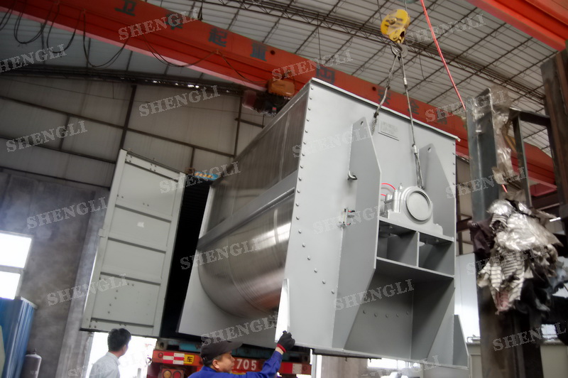 工作原理:螺帶式混合機采用U型筒體,內裝平行主軸,主軸上安裝正反雙向的盤條螺帶,不同維度螺帶分內螺帶與外螺帶,物料在螺帶的驅使下反復參混,能夠快速高效的混合。