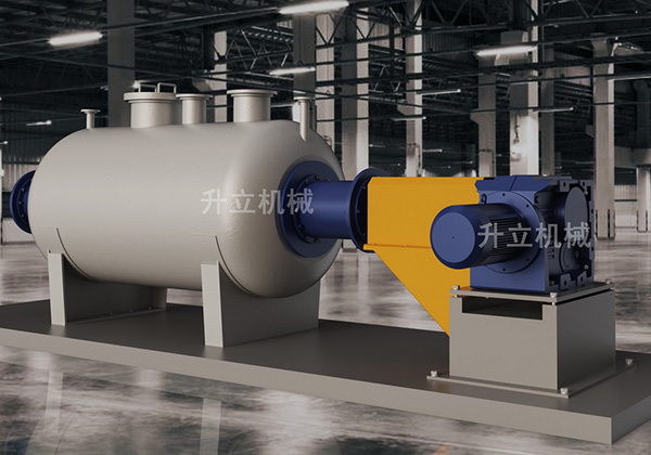 具有臥式筒體,內裝螺帶旋轉軸,軸上內、外螺帶相互推送物料,攪刀快速翻轉物料,在高溫狀態下使物料不停運動實現動態均勻受熱。
