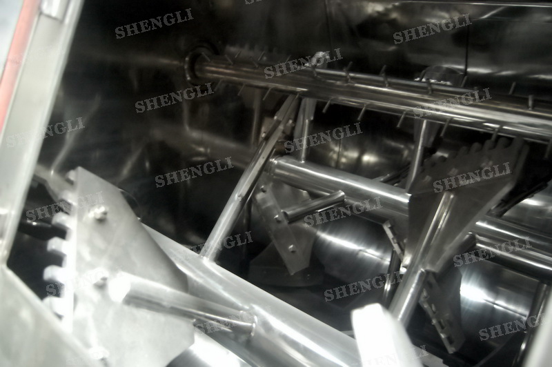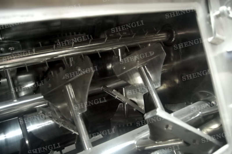 工作原理:無重力雙軸攪拌機采用雙U型筒體,內裝平行的雙主軸,主軸設有對稱的多組槳葉,其雙軸的運行軌跡部分重合形成嚙合空間,雙軸在受雙電機同步驅動,同步的對稱向外翻攪物料,致使物料能夠達到瞬間失重點,該設備具備高效物料無差別的混合能力。