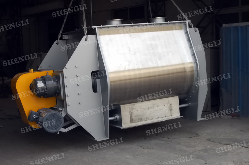 工作原理:無重力雙軸攪拌機采用雙U型筒體,內裝平行的雙主軸,主軸設有對稱的多組槳葉,其雙軸的運行軌跡部分重合形成嚙合空間,雙軸在受雙電機同步驅動,同步的對稱向外翻攪物料,致使物料能夠達到瞬間失重點,該設備具備高效物料無差別的混合能力。